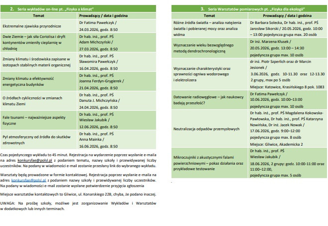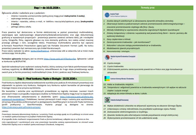 Zaproszenie do udziału w XXIX edycji ogólnopolskiego konkursu „Fizyka a ekologia" oraz w wydarzeniach towarzyszących – serii wykładów on-line „Fizyka a klimat" oraz serii warsztatów pomiarowych „Fizyka dla ekologii".