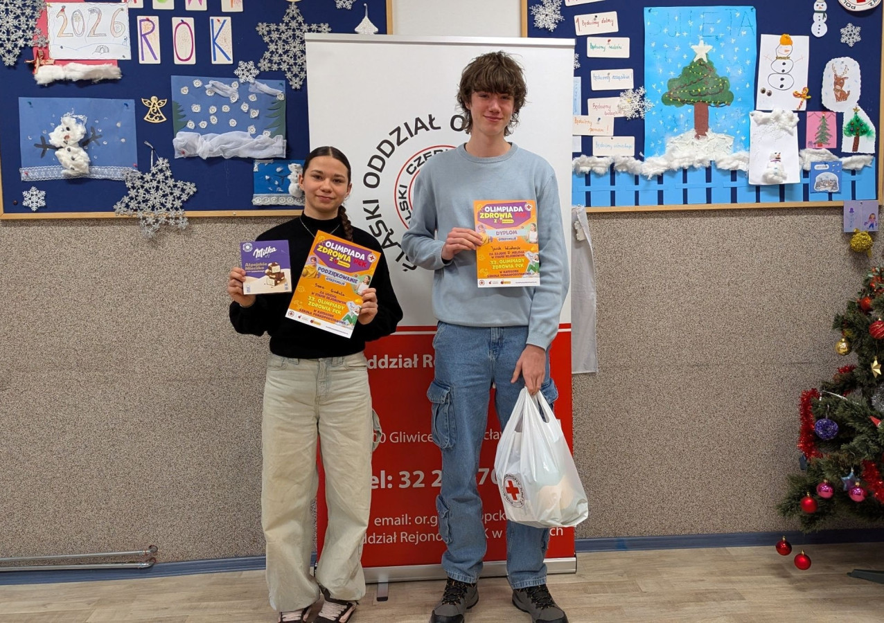 Jacek Wiaterek (kl. 3P) oraz Sara Godula (kl. 3R) wzięli udział w rejonowym etapie XXXIII Olimpiady Zdrowia PCK. Jacek zajął I miejsce i awansował do kolejnego, okręgowego etapu Olimpiady. Gratulujemy!