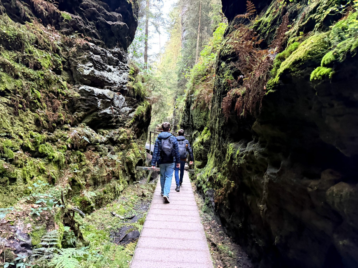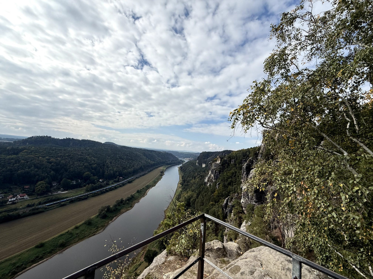 Jednak staż okazał się po dłuższym czasie męczący, dlatego w weekend wyjechaliśmy do parku narodowego “Saksońska Szwajcaria”, położonego na południowy-wschód od Drezna. Wyruszyliśmy ze stacji “Drezden-Neustadt” rano po śniadaniu i dojechaliśmy na miejsce w około 35 minut. Ostatnią przeszkodą, zanim mogliśmy wejść na teren parku narodowego była rzeka Łaba, którą pokonaliśmy promem. Przeszliśmy jeden z najpopularniejszych szlaków, prowadzący przez skalne wąwozy, charakterystyczne dla tego obszaru. A na słynnym Moście Bastei podziwialiśmy lotu ptaka Łabę.