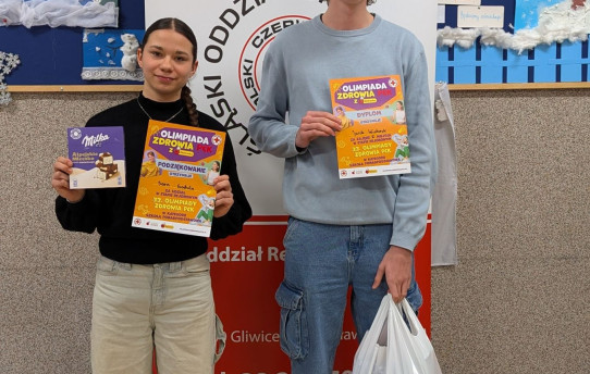 Jacek Wiaterek (kl. 3P) oraz Sara Godula (kl. 3R) wzięli udział w rejonowym etapie XXXIII Olimpiady Zdrowia PCK. Jacek zajął I miejsce i awansował do kolejnego, okręgowego etapu Olimpiady. Gratulujemy!
