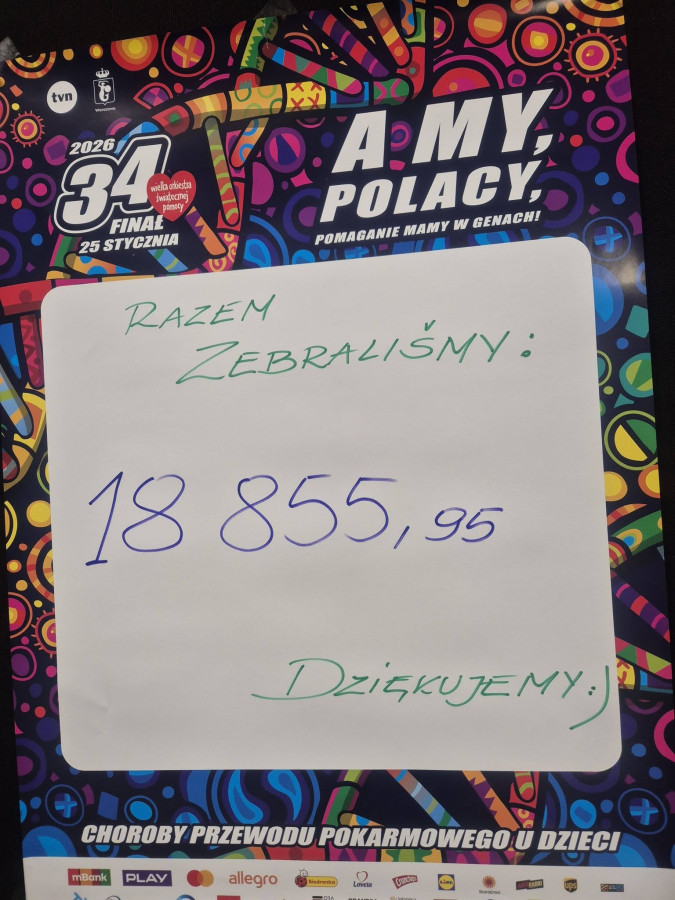 40 dzielnych wolontariuszy z naszego sztabu oraz mieszkańcy internatu i uczniowie naszej szkoły zebrali: