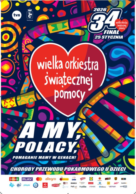 W niedzielę 25 stycznia 2026 r. po raz XXXIV zagra Wielka Orkiestra Świątecznej Pomocy