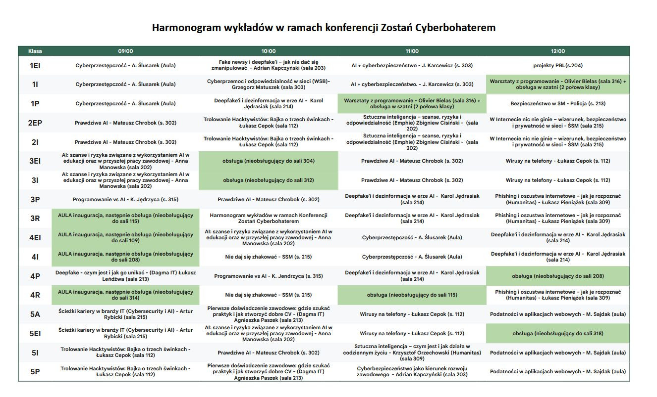 Konferencja "Zostań cyberbohaterem" - harmonogram