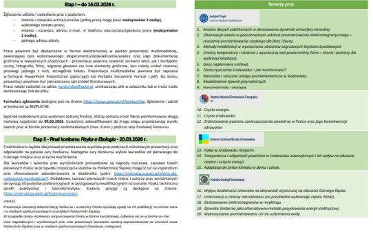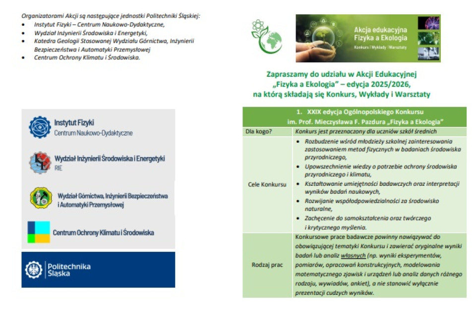 Zaproszenie do udziału w XXIX edycji ogólnopolskiego konkursu „Fizyka a ekologia" oraz w wydarzeniach towarzyszących – serii wykładów on-line „Fizyka a klimat" oraz serii warsztatów pomiarowych „Fizyka dla ekologii".
