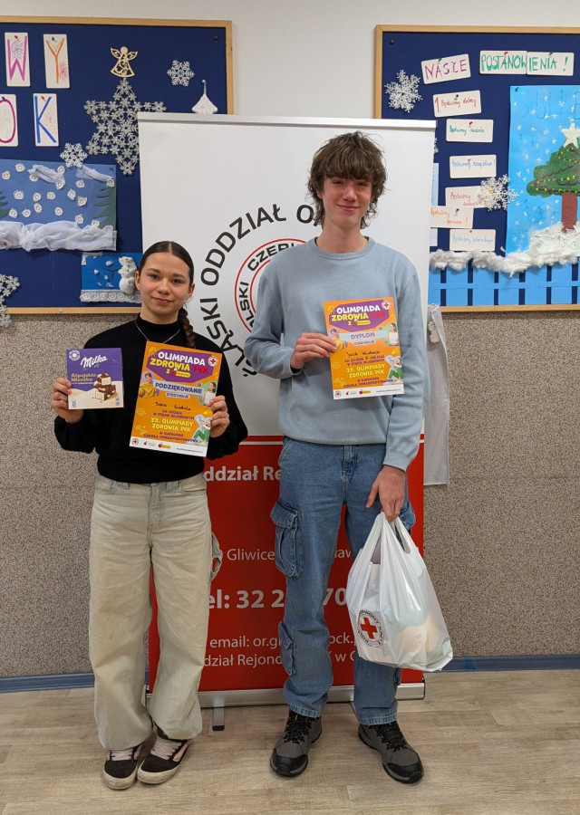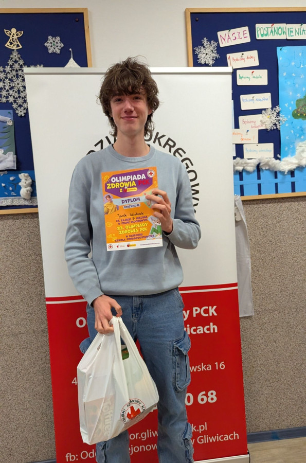 Jacek Wiaterek (kl. 3P) oraz Sara Godula (kl. 3R) wzięli udział w rejonowym etapie XXXIII Olimpiady Zdrowia PCK. Jacek zajął I miejsce i awansował do kolejnego, okręgowego etapu Olimpiady. Gratulujemy!