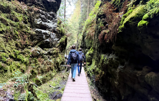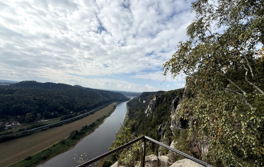 Jednak staż okazał się po dłuższym czasie męczący, dlatego w weekend wyjechaliśmy do parku narodowego “Saksońska Szwajcaria”, położonego na południowy-wschód od Drezna. Wyruszyliśmy ze stacji “Drezden-Neustadt” rano po śniadaniu i dojechaliśmy na miejsce w około 35 minut. Ostatnią przeszkodą, zanim mogliśmy wejść na teren parku narodowego była rzeka Łaba, którą pokonaliśmy promem. Przeszliśmy jeden z najpopularniejszych szlaków, prowadzący przez skalne wąwozy, charakterystyczne dla tego obszaru. A na słynnym Moście Bastei podziwialiśmy lotu ptaka Łabę.