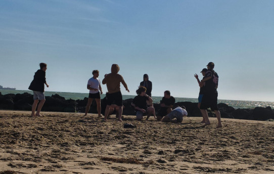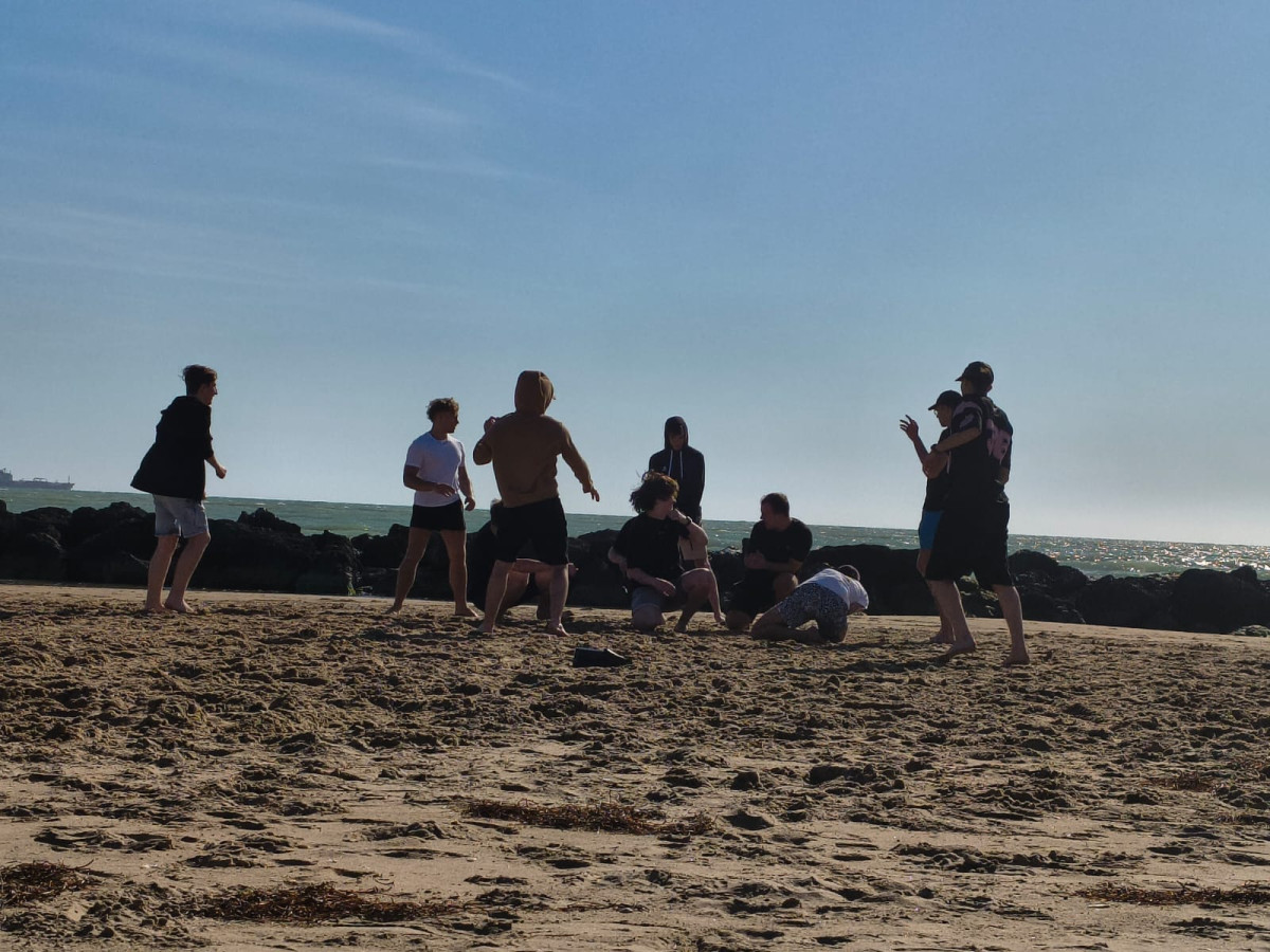 Następnie wysłuchaliśmy prezentacji dotyczącej Sycylii oraz naszego miejsca praktyk i po pięciominutowej przerwie zapoznaliśmy się z planem na najbliższe dni. Po wizycie organizacyjnej i spacerze, który choć trochę pozwolił nam poznać miasto Gela, korzystając z pięknej pogody, udaliśmy się na plażę. Tam relaksując się po dniu pełnym wrażeń spędziliśmy czas na kąpieli w morzu oraz grze w siatkówkę i piłkę nożną.