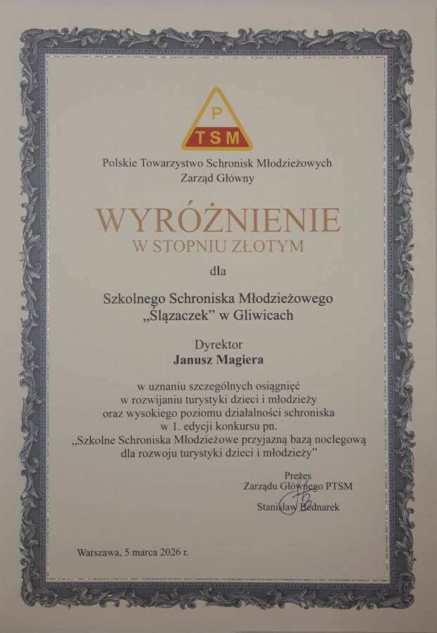 Szkolne Schronisko Młodzieżowe "Ślązaczek" od lat bierze udział w Ogólnopolskim Konkursie Współzawodnictwa Schronisk Młodzieżowych organizowanym przez Zarząd Główny PTSM.