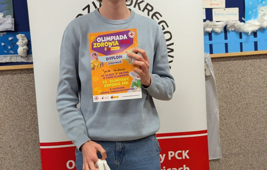 Jacek Wiaterek (kl. 3P) oraz Sara Godula (kl. 3R) wzięli udział w rejonowym etapie XXXIII Olimpiady Zdrowia PCK. Jacek zajął I miejsce i awansował do kolejnego, okręgowego etapu Olimpiady. Gratulujemy!